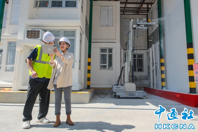 •   香港特區政府房屋局5月12日舉辦“房屋建築機械人——油漆大師比拼賽x武林大會”,以促進行業技術落地,帶領公營房屋發展邁入智能建造新紀元。圖為香港特區政府房屋局局長何永賢(右)示範操作6米墻面處理機械人。(香港中通社記者 許其皓攝) 香港中通社圖片