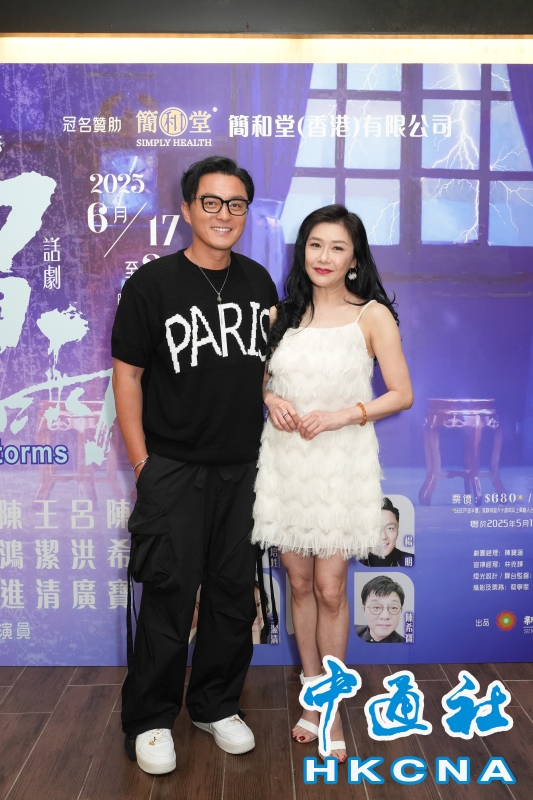 •   5月14日,徇眾要求《雷雨》三度重演,定於6月17至21日一連五場,假演藝學院公演,門票由5月19日起於購票通Cityline及電話訂票熱線公開發售。圖為張慧儀、楊明出席記者會。 香港中通社圖片