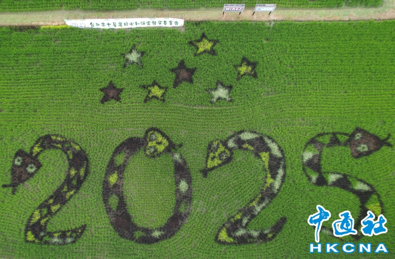 •   台北市七星農田水利研究發展基金會每年舉辦的關渡彩繪稻田,今年主題為“蛇全蛇美”,在自行車道旁格外吸引單車騎士的目光。 香港中通社圖片
