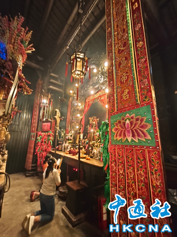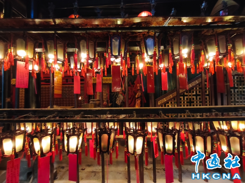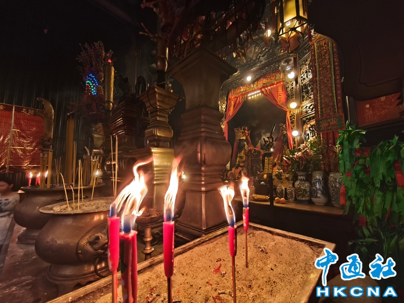 近日,香港發展旅遊熱點工作組公佈首階段旅遊熱點落實項目,公佈九個旅遊熱點項目,包括能回溯香港工業品牌變遷、中環citywalk(漫步)、生態遊,再闖入九龍城遊歷城寨風光,並擬開放旅客熱熾期望的“打卡”熱點。在中環漫步舊城,屋頂由綠瓦鋪成的文武廟是眾多訪港遊客參觀遊覽的地方,文武廟估計建於1847至1862年間,由文武廟、列聖宮和公所三幢建築組成。文武廟主要供奉文昌及武帝(關帝);列聖宮用作供奉諸神列聖;而公所則是當時華人議事及解決紛爭的地方。文武廟內還完好地保留了鑄於1847年的銅鐘,和造於1862年的官轎。古廟屋頂的花崗石柱、花崗石門框、木雕匾額和歷史悠久的壁畫,更是巧奪天工,盡顯精湛的傳統工藝和技術,活靈活現地展示中式建築的特色。善信來文武廟,有的祈求學業猛進、有的祈求事事順景。你可以準備元寶衣紙、一紮細香、三枝長壽香及香油錢,奉上香火誠心祈福。其他供品例如生菜寓意“生財”;圓形的橘子類水果則代表圓滿和順利。文武廟除了華人信仰拜祭外,近年吸引不少外國遊客來此感受傳統文化。(香港中通社記者洪少葵攝) 香港中通社圖片