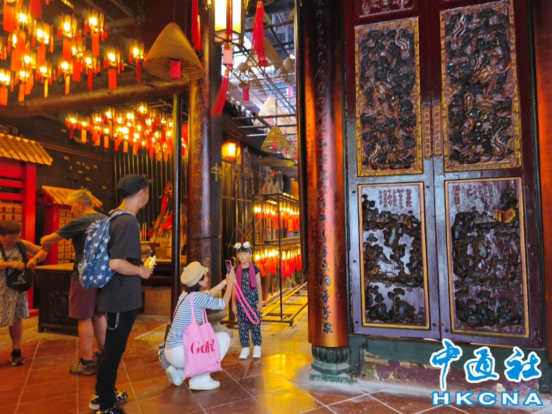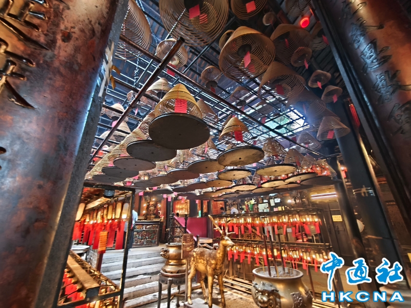 近日,香港發展旅遊熱點工作組公佈首階段旅遊熱點落實項目,公佈九個旅遊熱點項目,包括能回溯香港工業品牌變遷、中環citywalk(漫步)、生態遊,再闖入九龍城遊歷城寨風光,並擬開放旅客熱熾期望的“打卡”熱點。帶領工作組的政務司副司長卓永興形容項目共通點是均具香港特色、有新意或新體驗、值得“打卡”,遍布港九新界,體現香港無處不旅遊的特色。在中環漫步舊城,屋頂由綠瓦鋪成的文武廟是眾多訪港遊客參觀遊覽的地方,文武廟估計建於1847至1862年間,由文武廟、列聖宮和公所三幢建築組成。文武廟主要供奉文昌及武帝(關帝);列聖宮用作供奉諸神列聖;而公所則是當時華人議事及解決紛爭的地方。文武廟內還完好地保留了鑄於1847年的銅鐘,和造於1862年的官轎。古廟屋頂的花崗石柱、花崗石門框、木雕匾額和歷史悠久的壁畫,更是巧奪天工,盡顯精湛的傳統工藝和技術,活靈活現地展示中式建築的特色。善信來文武廟,有的祈求學業猛進、有的祈求事事順景。你可以準備元寶衣紙、一紮細香、三枝長壽香及香油錢,奉上香火誠心祈福。其他供品例如生菜寓意“生財”;圓形的橘子類水果則代表圓滿和順利。文武廟除了華人信仰拜祭外,近年吸引不少外國遊客來此感受傳統文化。(香港中通社記者洪少葵攝) 香港中通社圖片