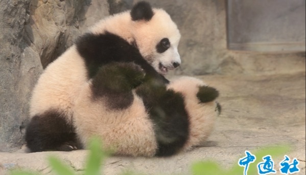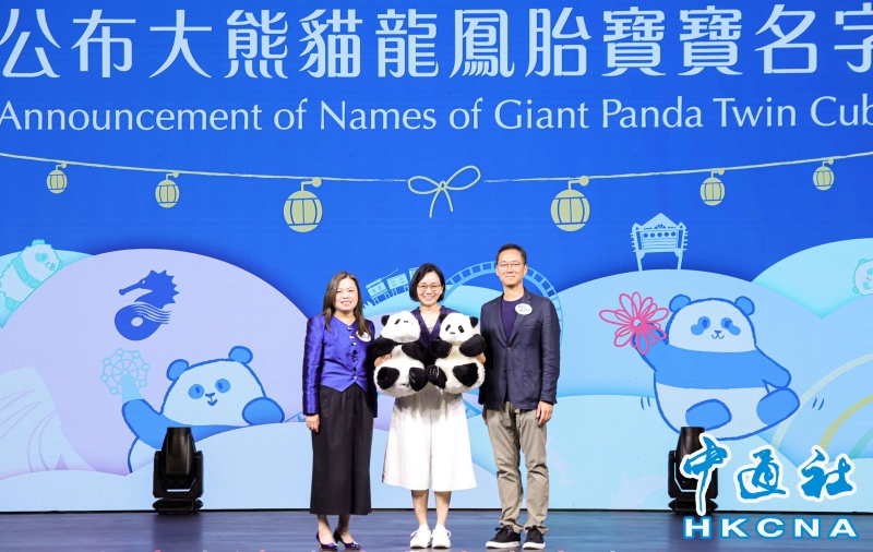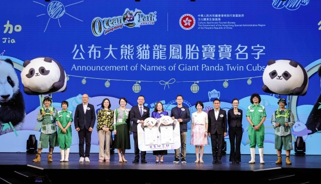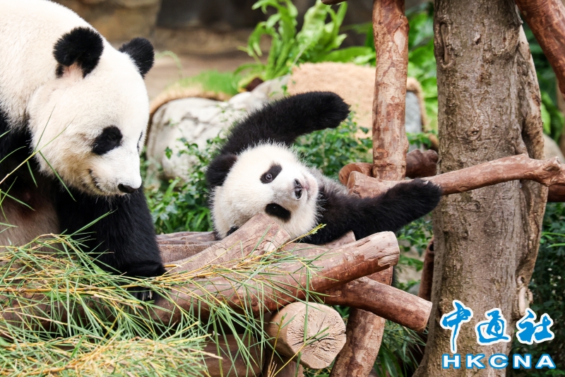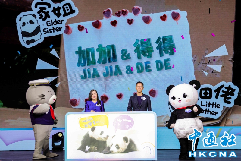 在港出生大熊貓龍鳳胎幼崽取名為“加加”“得得”分享到: