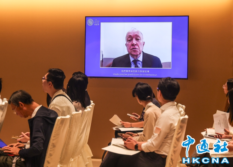 香港邵逸夫獎基金會27日公佈2025年度邵逸夫獎獲獎名單,共有4位獲獎者,並透露未來將設第四個獎項。今年邵逸夫獎的天文學獎平均頒予約翰·理察·邦德 (John Richard Bond)和喬治·艾夫斯塔希歐 (George Efstathiou),他們分別是加拿大理論天體物理研究所教授暨多倫多大學教授,以及英國劍橋大學天體物理學教授。他們對宇宙微波背景輻射漲落的研究,發現微波背景輻射的溫度和強度的差異,研究這些差異,可精確得知宇宙的年齡、能量,研究得到大量地面、氣球和太空觀測儀器的驗證。生命科學與醫學獎頒予德國馬克斯普朗克生物化學研究所榮休所長暨科學會員沃爾夫岡·鮑邁斯特 (Wolfgang Baumeister),表彰他對於冷凍電子斷層成像技術(cryo-ET)的開創性研發和應用。圖為遴選委員會主席錄影訪問。(香港中通社記者 曹文毓攝) 香港中通社圖片