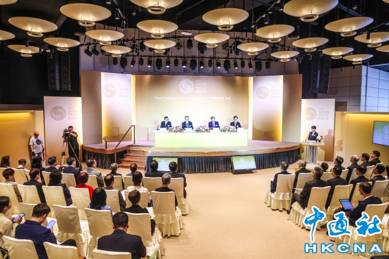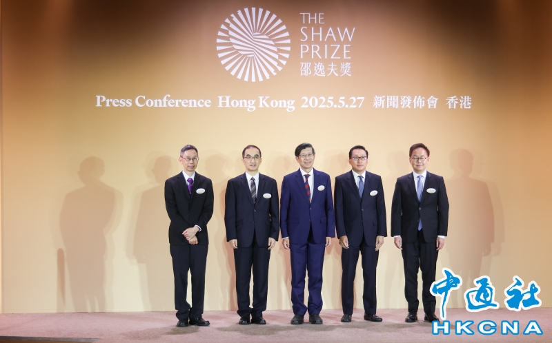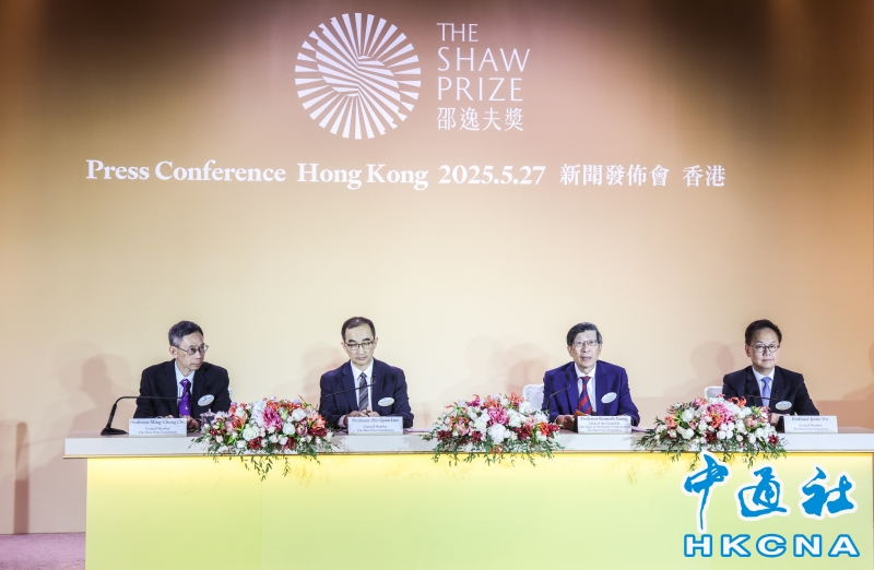 香港邵逸夫獎基金會27日公佈2025年度邵逸夫獎獲獎名單,共有4位獲獎者,並透露未來將設第四個獎項。今年邵逸夫獎的天文學獎平均頒予約翰·理察·邦德 (John Richard Bond)和喬治·艾夫斯塔希歐 (George Efstathiou),他們分別是加拿大理論天體物理研究所教授暨多倫多大學教授,以及英國劍橋大學天體物理學教授。他們對宇宙微波背景輻射漲落的研究,發現微波背景輻射的溫度和強度的差異,研究這些差異,可精確得知宇宙的年齡、能量,研究得到大量地面、氣球和太空觀測儀器的驗證。生命科學與醫學獎頒予德國馬克斯普朗克生物化學研究所榮休所長暨科學會員沃爾夫岡·鮑邁斯特 (Wolfgang Baumeister),表彰他對於冷凍電子斷層成像技術(cryo-ET)的開創性研發和應用。圖為邵逸夫獎理事會理事公布得獎者名單。(香港中通社記者 曹文毓攝) 香港中通社圖片