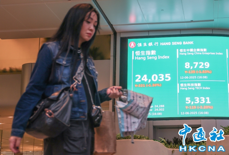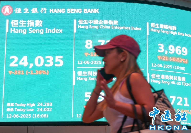 •   6月12日,截至收盤,香港恒生指數跌331.56點,跌幅1.36%,報24035.38點,主板全天成交2444.12億港元。(香港中通社記者 曹文毓攝) 香港中通社圖片