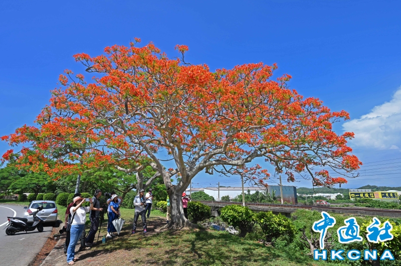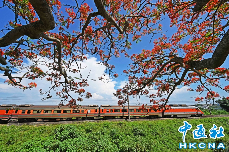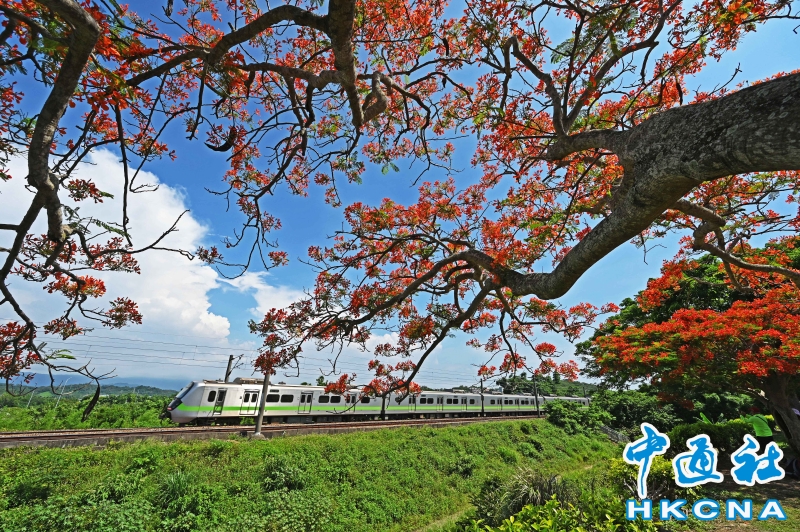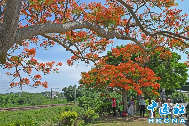 台灣苗栗鳳凰花與火車吸引遊客拍照打卡分享到: