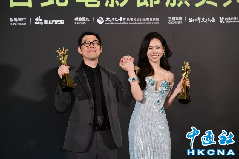 •   2025第27屆台北電影節7月5日於台北中山堂舉辦頒獎典禮,今年共有274件作品報名,將選出包括最佳劇情長片、導演、編劇、男主角、女主角、女配角等共21個獎項。圖為電影《小雁與吳愛麗》獲得 第27屆台北電影節“最佳劇情片獎” 。香港中通社圖片
