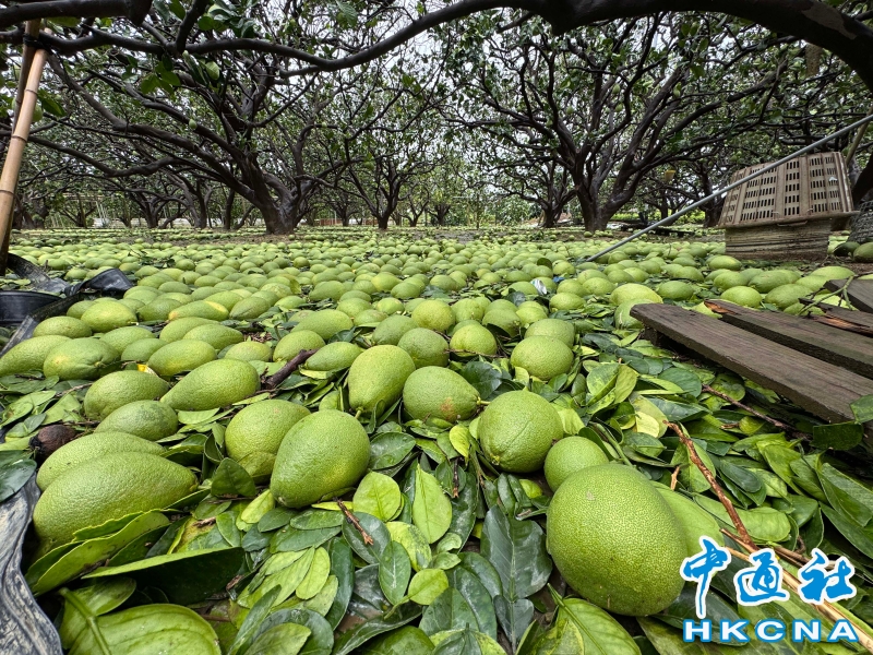 •   7月為夏季農作物盛產期,颱風“丹娜絲”導致台灣農業受災嚴重,據估計,農業產物及民間設施損失新台幣10億527萬元,受損農作物以香蕉最多,其次為文旦柚。圖為台南麻豆文旦柚被吹落一地,農民損失慘重。 香港中通社圖片