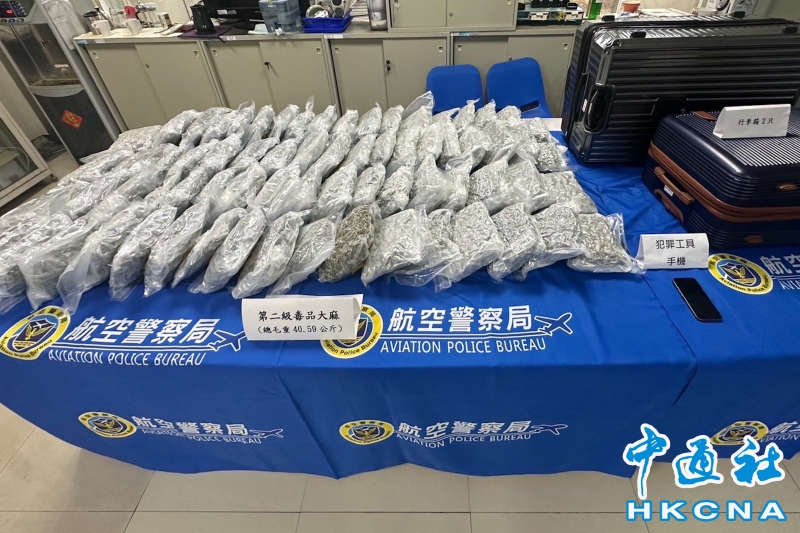 •   台灣桃園航警局7月10日宣布查獲從泰國曼谷搭機來台灣的泰國籍女子攜帶毒品大麻40.59公斤企圖闖關,遭到查獲。 香港中通社圖片