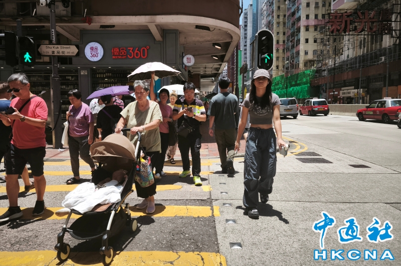 •   7月17日,香港市民在烈日下出行。受到熱帶氣旋影響香港連日天氣炎熱。當天,天文台發出酷熱天氣警告,預測位於菲律賓以東的熱帶氣旋會在18日晚至19日初時進入香港800公里範圍,天文台屆時會發出一號戒備信號。(香港中通社記者洪少葵攝) 香港中通社圖片