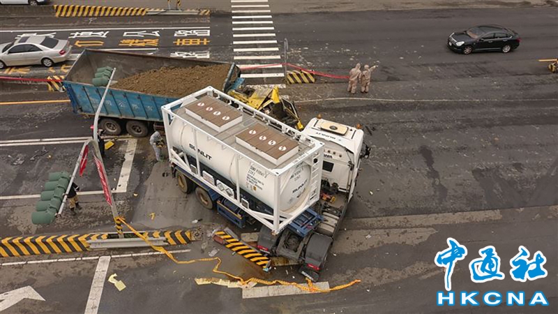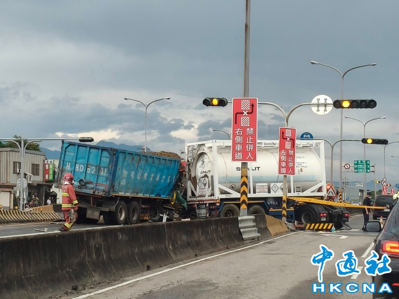 台灣新竹縣發生化學槽車與砂石車車禍分享到: