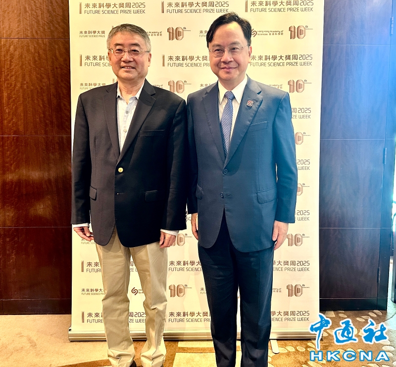 •     7月25日,未來科學大獎周程序委員會聯席主席盧煜明向傳媒分享,未來科學大獎將在8月6日在香港公佈獲獎者,並邀請諾貝爾獎得主來港參與。圖為盧煜明(右)與未來科學大獎捐贈人、真格基金聯合創始人王強。(香港中通社記者 陳卓儀攝) 香港中通社圖片