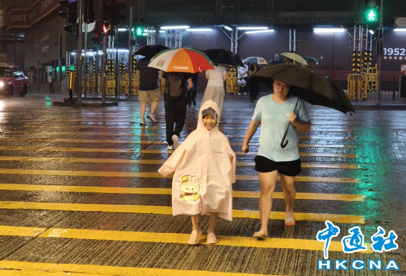•   7月25日晚,香港市區突下暴雨。天文台在晚上7時40分發出紅色暴雨警告信號 天文台表示,高溫觸發的驟雨及雷暴正影響本港東部,并有機會影響其他地區,預料本港短期內有強烈狂風雷暴,部分地區雨勢較大。(香港中通社記者洪少葵攝)