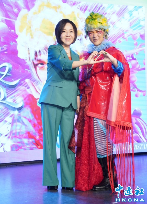 •   7月29日,台灣歌手陳孟賢舉行首張專輯《全球巨星》發片記者會。陳孟賢出道之初的大貴人於美人(左)也親自站台力挺,陳孟賢表示感謝美人姐當年資助經費,自己才能走到今天圓夢出專輯。 香港中通社圖片