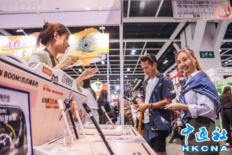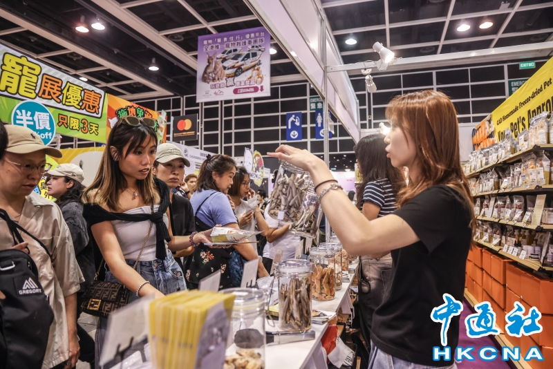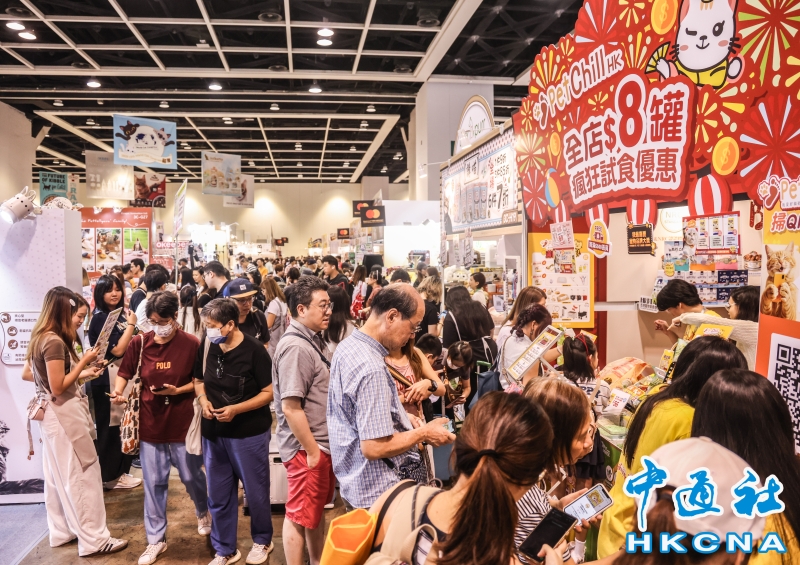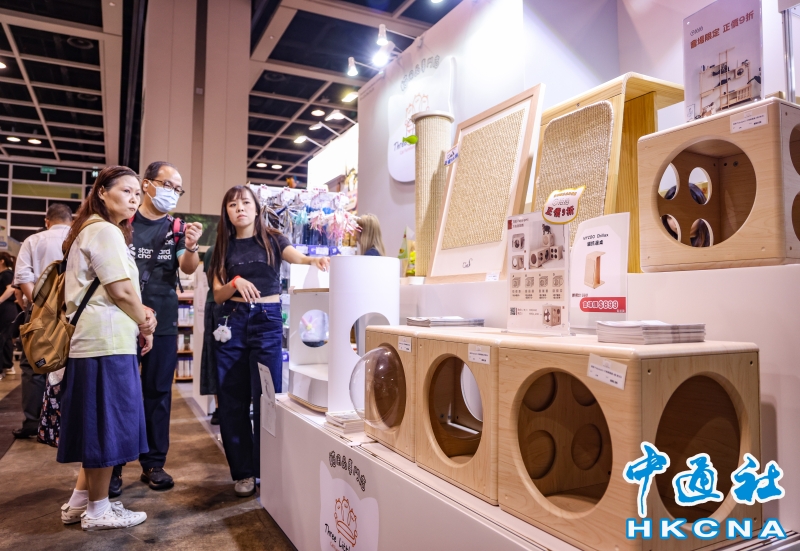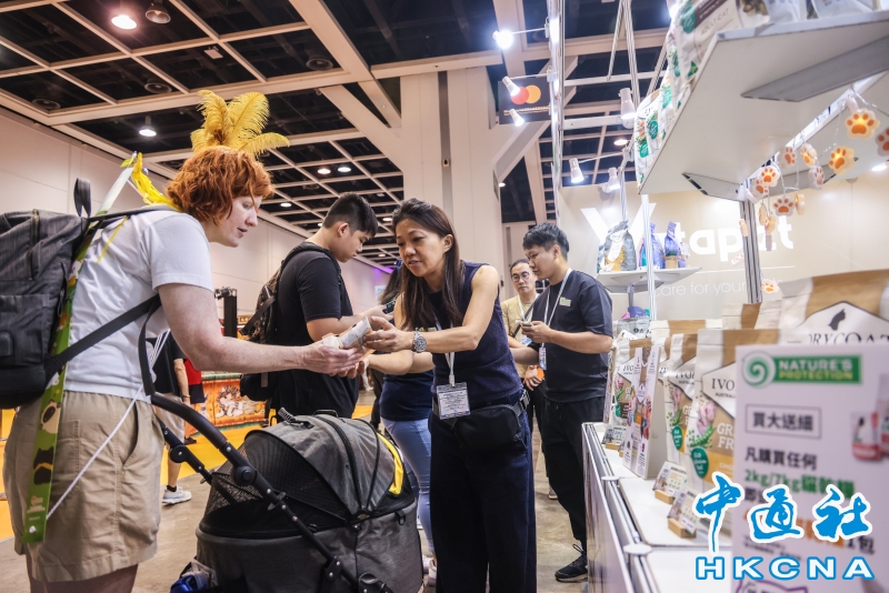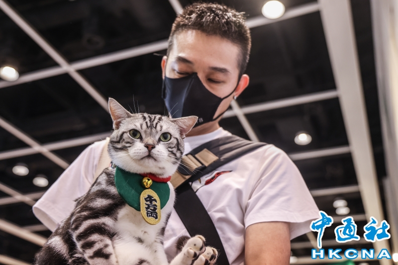 香港貓迷博覽會8月1日起一連三天在會展中心舉行,自疫情後的2023年舉辦首屆後,展會頗受歡迎,“喵經濟”展現巨大潛力。香港養貓群體不斷擴大,政府統計處數據顯示,全港有逾24萬住戶飼養貓或狗,佔所有住戶近一成,其中貓咪達18.4萬隻。養貓開支亦持續攀升,有調查指,逾八成養貓人士月均養貓支出達2006港元,按年增6.2%;每月豪擲3500至5000港元的“土豪貓主”比例從10%升至13%。(香港中通社記者 曹文毓攝) 香港中通社圖片