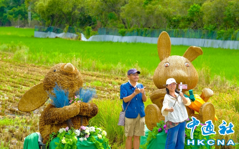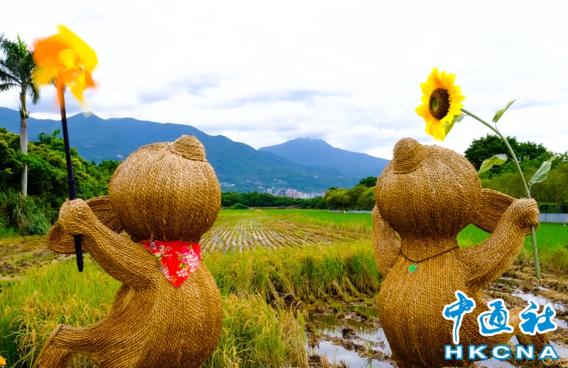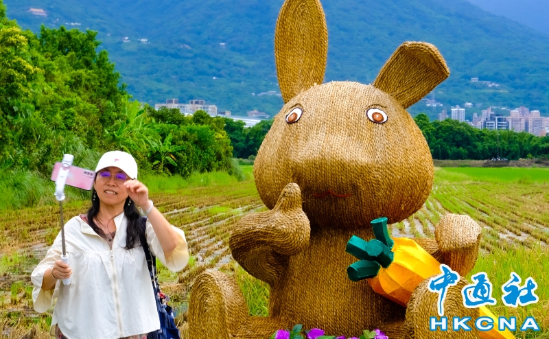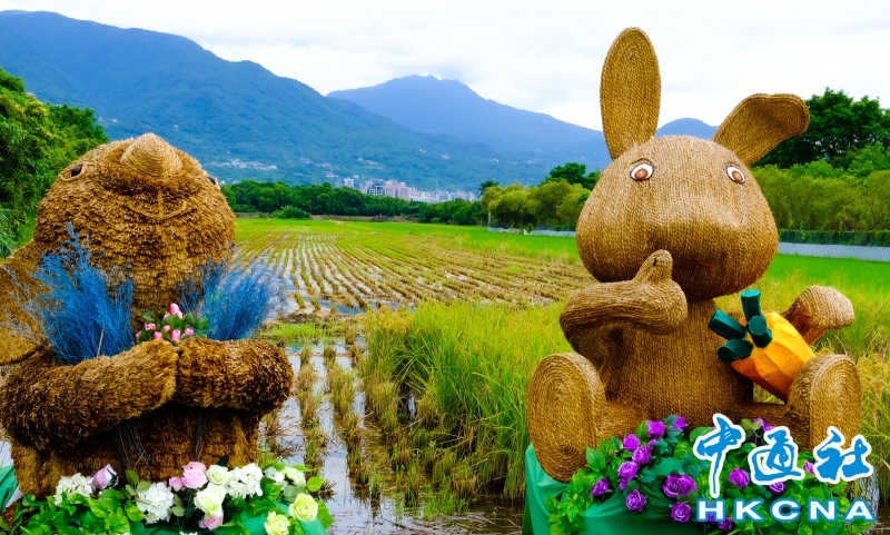 台北市北投區農會為推廣關渡水稻文化及營造「生產、生活、生態」三生共榮的農地多樣化,在關渡平原以「稻TO(兔)相逢」為主題,精心打造了5座巨大可愛的稻草兔兔地景藝術作品,超萌模樣伴隨稻穗成熟時隨風搖擺的黃金稻浪,遠景還可以眺望大屯山、七星山及紗帽山,是難得一見的田園風景,8月3日星期假日裡,荒野保護協會也在現場教導大小朋友收割稻米,以寓教於樂方式,讓民眾體驗生態環境及永續稻米具體概念。 香港中通社圖片