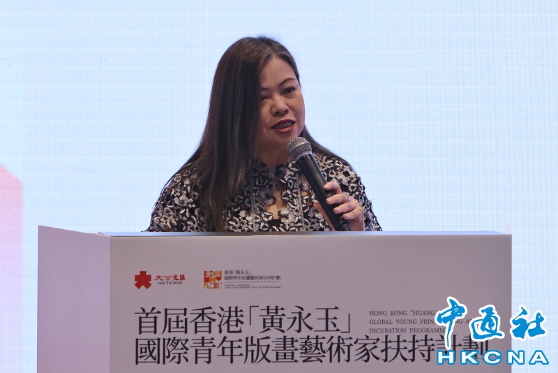 •   8月4日,首屆香港“黃永玉”國際青年版畫藝術家扶持計劃年度展覽舉行開幕禮。該計劃致力於挖掘和推薦中國青年藝術家,主要通過專業院校、機構推薦及藝術家自薦,每年為100位青年版畫藝術家提供以媒體為核心的全方位扶持,內容包括媒體報道及專訪、年度展覽、聯展、藝術創作等。圖為香港特區政府文化體育及旅遊局局長羅淑佩致辭。(香港中通社記者  謝光磊 攝) 香港中通社圖片