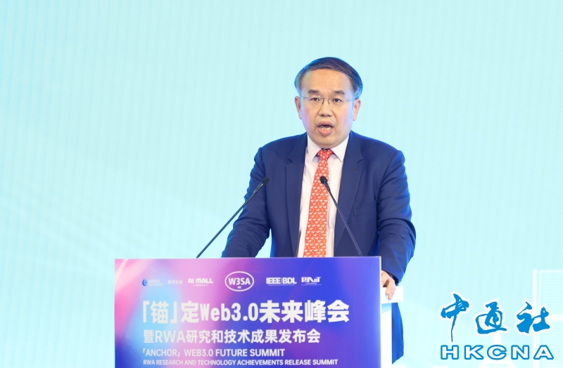 •   “錨”定Web3.0未來峰會7日在香港舉辦,會上同時舉行全球首個RWA注册登記平台上線儀式。實體資產(RWA) 指的是存在於非數位世界中的實體或有形資產,例如房地產、大宗商品、藝術品和智慧財產權等。圖為香港財經事務及庫務局局長許正宇致辭。(香港中通社記者 曹文毓攝) 香港中通社圖片