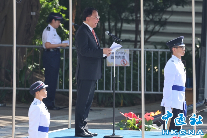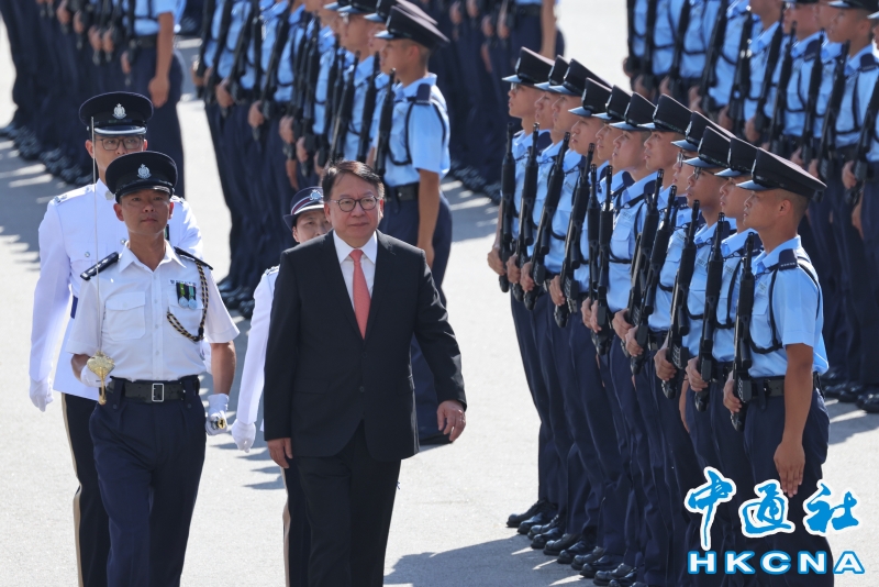 •   9月6日,香港警察學院舉行結業會操,香港特區政府政務司司長陳國基在典禮中檢閱畢業的見習督察和學警。(香港中通社記者  謝光磊 攝) 香港中通社圖片