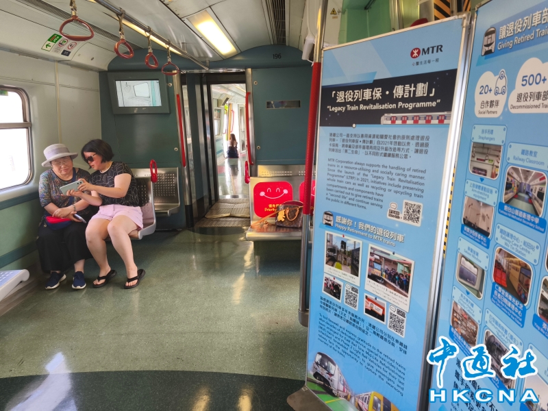 停泊在灣仔“水上運動及康樂主題區”兩卡已退役的東鐵線“烏蠅頭”列車,成為一個具香港特色的新地標和休憩空間。隨著港鐵不斷發展,港鐵公司透過“退役列車保傳計劃”,將兩卡已退役的“烏蠅頭”列車捐贈給發展局,並共同構思將這標誌性的列車重置於灣仔水上運動及康樂主題區,以作展示及公共活動空間。主題區展示車廂位置亦設置站牌、觀景台、圓形多用途廣場、人造草地、遮陽設施和夜光步道,為市民提供一個滿載集體回憶的公共休憩空間。 香港中通社圖片