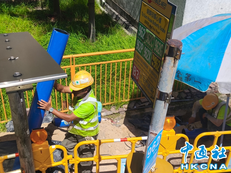 •   9月13日,工人在炎熱天氣下工作。當天香港天文台發出酷熱天氣警告。 香港中通社圖片
