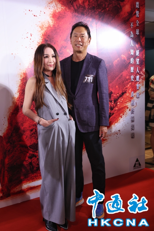 •   9月18日,主演溫碧霞攜丈夫何祖光出席電影《731》香港首映禮。以侵華日軍第七三一部隊為題材的電影《731》在香港影藝戲院(JP)舉行首映禮,儀式特別選在晚上7時31分舉行,別具意義。(香港中通社記者 謝光磊 攝) 香港中通社圖片