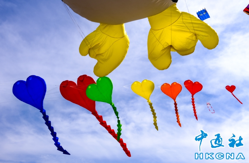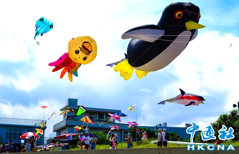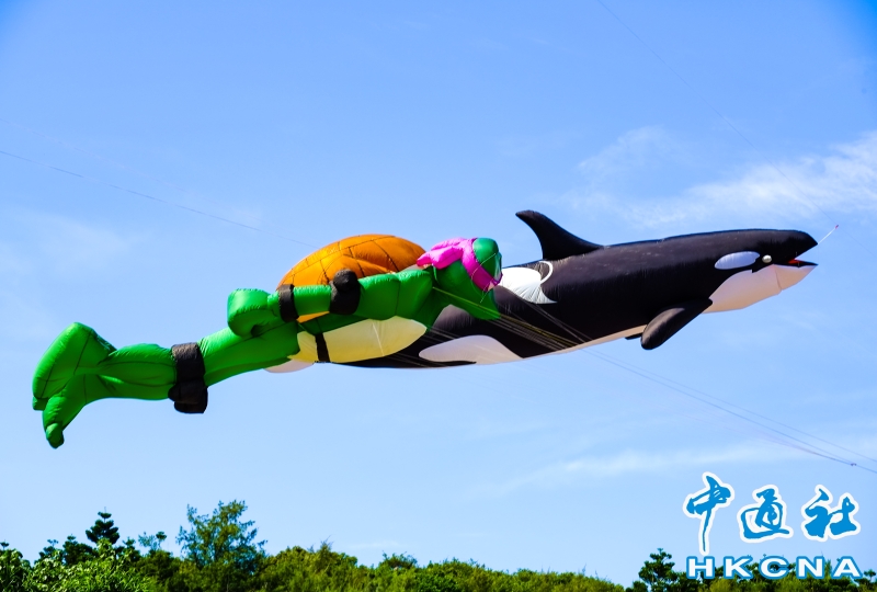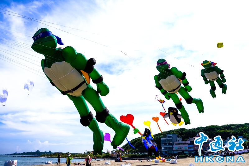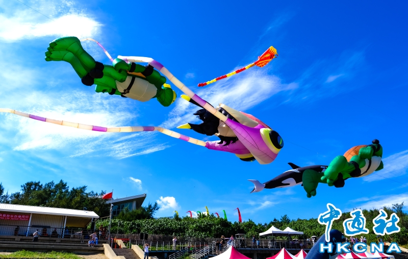 台灣“2025新北市北海岸國際風箏節”於9月20日於新北市石門區白沙灣登場,今年以“追風.迎豐”為活動主軸,來自世界各地的熱愛風箏人士一同共襄盛舉,攜手打造空中的豐收慶典活動,除了有世界各地的特色造型風箏、軟體風箏、特技風箏外,通過亮相競技觀摩,促成相互交流,讓北海岸的天空亮麗耀眼起來。今年風箏節以“海洋生物”為設計主軸,有鯨魚、海螺、獅子魚、章魚…等各式各樣可愛造型風箏升空,其中包含巨型章魚風箏、大型鯨魚風箏及首次在白沙灣亮相的「獅子魚」等大型風箏亮相,讓北海岸天空增添視覺震撼。圖為各式各樣的“海洋生物”風箏、非常吸睛,讓北海岸天空增添視覺震撼。 香港中通社圖片