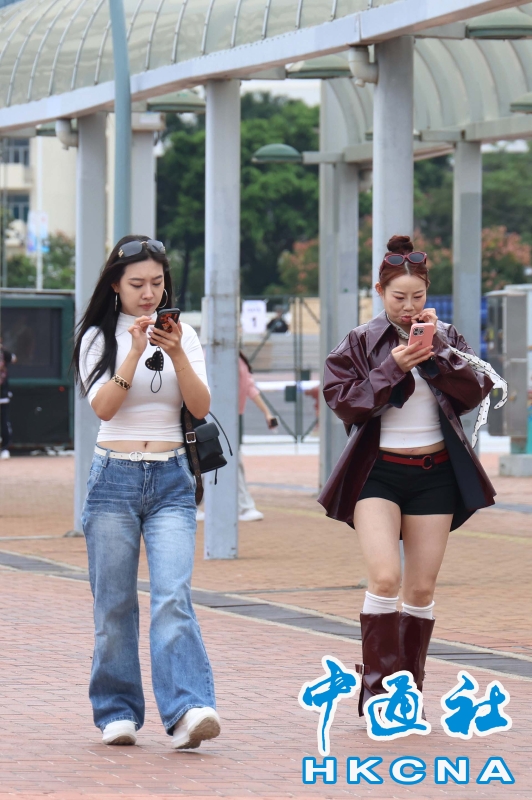 •   11月4日,香港進入秋高氣爽,逐漸轉涼,市民出行均添加衣服。女士迫不及待將冬衣展示,街頭成為時裝秀場。(香港中通社 鄧梓傑攝) 香港中通社圖片