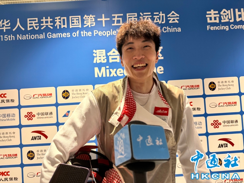 •   全國第十五屆運動會男子花劍決賽16日晚在香港啟德體育園開展。福建隊許杰對陣江蘇隊鄒天一,以15:13摘金。(香港中通社記者 張明臻攝) 香港中通社圖片