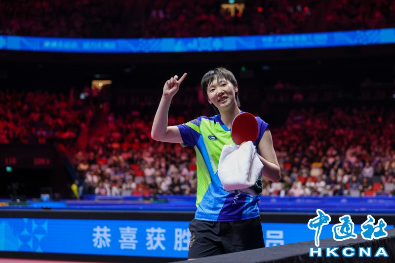 •   11月16日,十五運會乒乓球女子單打項目在澳門銀河綜藝館上演決賽。黑龍江隊選手王曼昱擊退河北隊孫穎莎,成功衛冕。香港中通社圖片