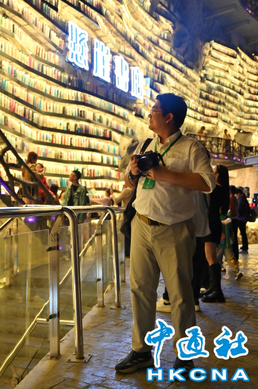 •     圖為泰國媒體人諾帕裡·卡蒙蘇萬在懸崖書店參觀體驗。 香港中通社圖片