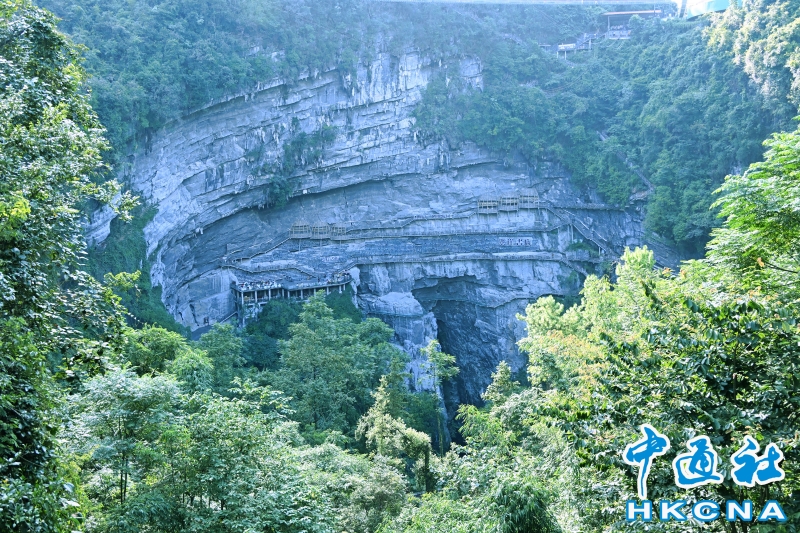 •     圖為航拍棉花天坑景區。 香港中通社圖片