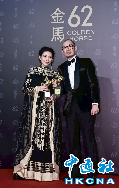 •   2025第62屆金馬獎頒獎典禮11月22日於台北流行音樂中心登場。圖為張吉安〈右〉、戴佩妮〈左〉以電影《地母》獲第62屆金馬獎最佳原創電影歌曲獎。 香港中通社圖片