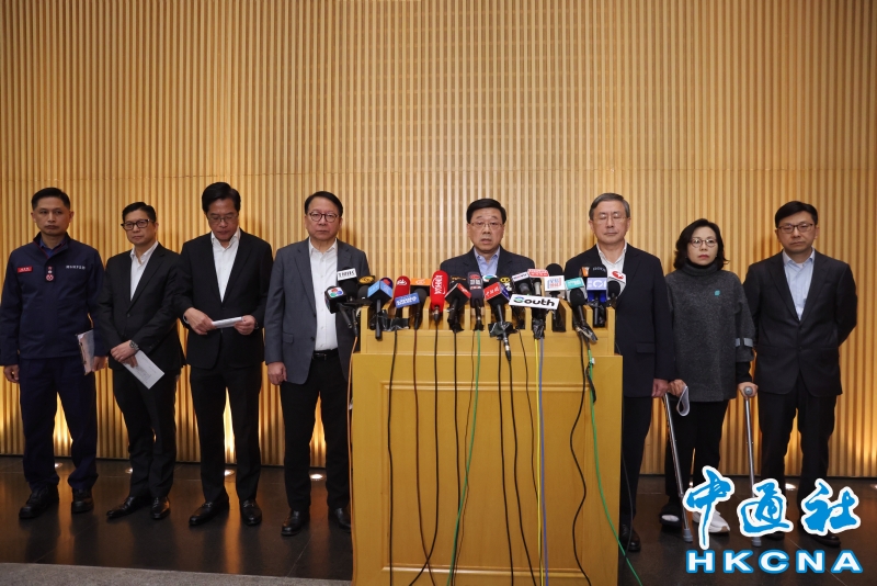 •   11月27日下午,香港特區行政長官李家超聯同相關官員在政府總部就大埔宏福苑五級火警跟進工作會見傳媒。(香港中通社記者  謝光磊 攝) 香港中通社圖片