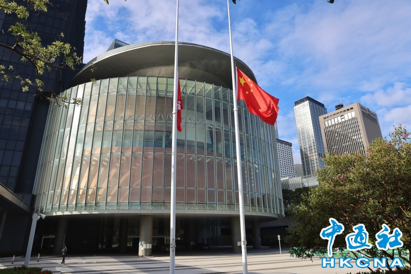 •   11月29日,為表達對大埔宏福苑火災罹難者的沉痛哀悼,香港特區政府今日起進行悼念活動。圖為香港立法會降半旗誌哀。(香港中通社記者 謝光磊 攝) 香港中通社圖片