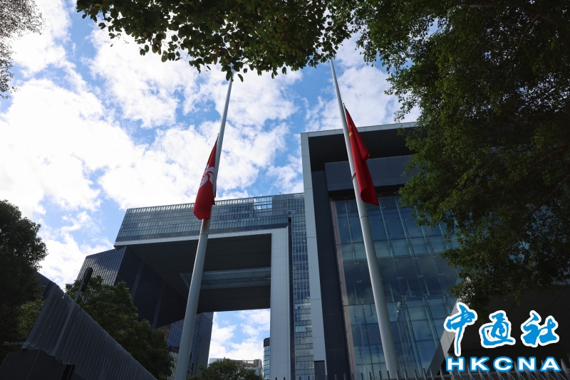 •   11月29日,為表達對大埔宏福苑火災罹難者的沉痛哀悼,香港特區政府今日起進行悼念活動。圖為香港行政長官辦公室降半旗誌哀。(香港中通社記者 謝光磊 攝) 香港中通社圖片