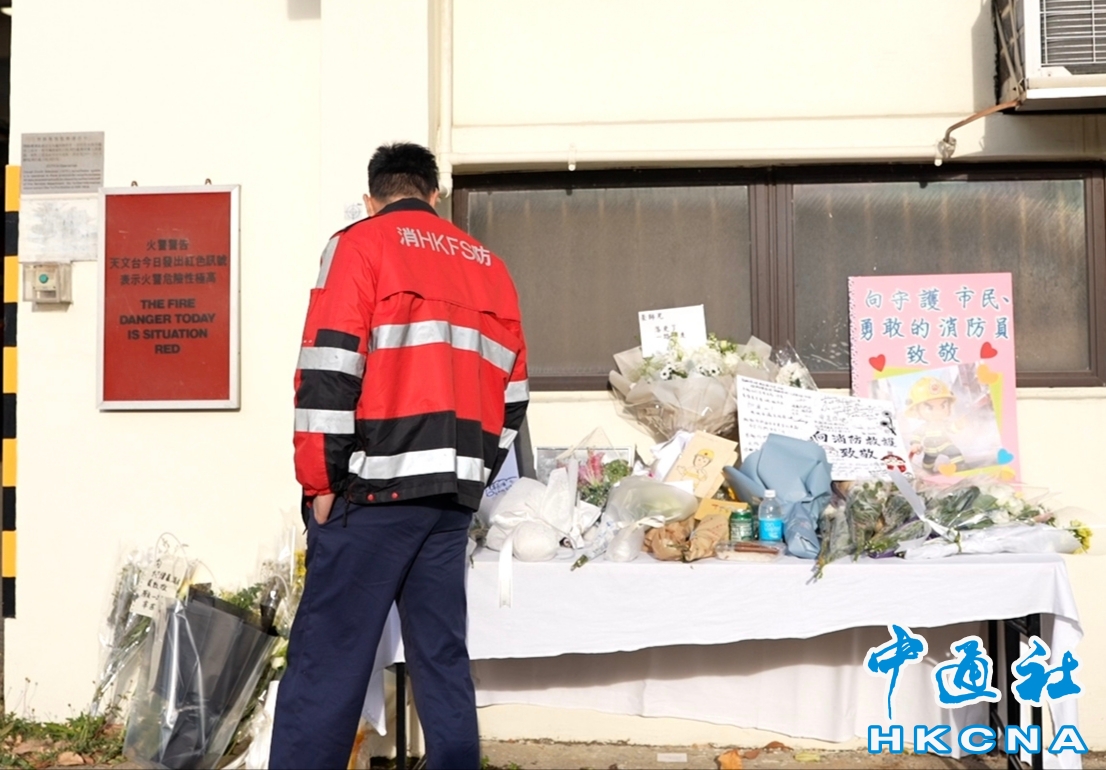 •   11月29日,香港沙田消防局降半旗誌哀。有市民在消防局外送上鮮花和心意卡 ,悼念殉職的消防員何偉豪 。大埔宏福苑11月26日發生五級火,消防員何偉豪不幸殉職。 香港中通社圖片