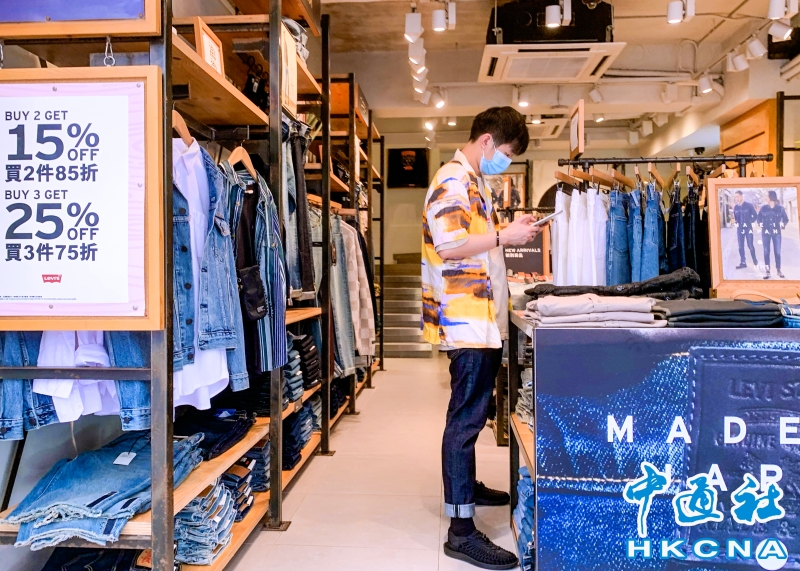 •   香港特區政府統計處公佈,10月香港零售業總銷貨價值臨時估計352億元,按年升6.9%,升幅較9月加快0.9個百分點。今年首10個月表現與去年同期相若。圖為市民在旺角一服裝店內選購衣服。(香港中通社記者 徐文峰攝) 香港中通社圖片