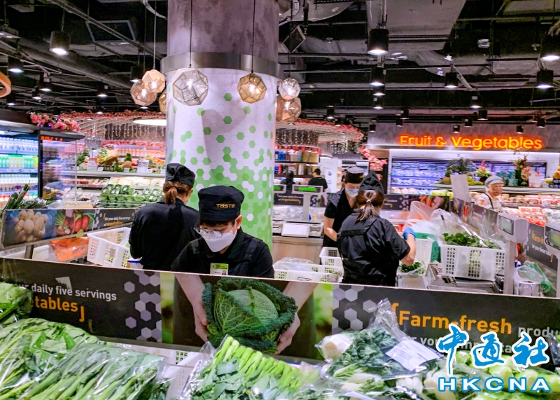 •   香港特區政府統計處公佈,10月香港零售業總銷貨價值臨時估計352億元,按年升6.9%,升幅較9月加快0.9個百分點。今年首10個月表現與去年同期相若。圖為員工在九龍塘一超市内工作。(香港中通社記者 徐文峰攝) 香港中通社圖片