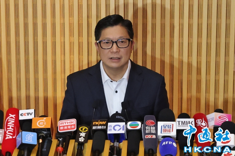 •   12月1日,香港特區政府政務司司長陳國基聯同保安局局長鄧炳強、廉政專員胡英明、警務處刑事及保安處處長陳東就大埔宏福苑火災最新調查進展會見傳媒。鄧炳強相信,有人將不合格棚網混入合格棚網中使用。(香港中通社記者  謝光磊 攝) 香港中通社圖片