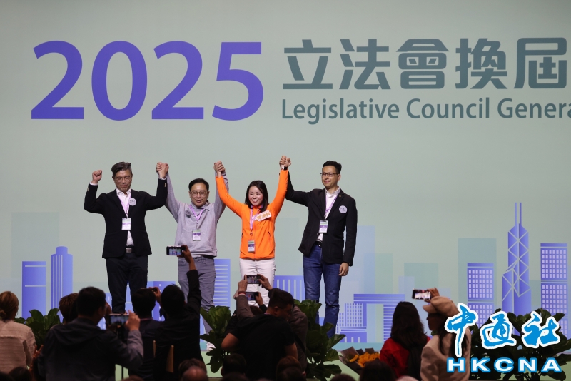 •   12月8日,2025年香港立法會換屆選舉地方選區香港島東公佈結果:1號候選人吳秋北、2號候選人植潔鈴成功當選。(香港中通社記者  謝光磊 攝) 香港中通社圖片