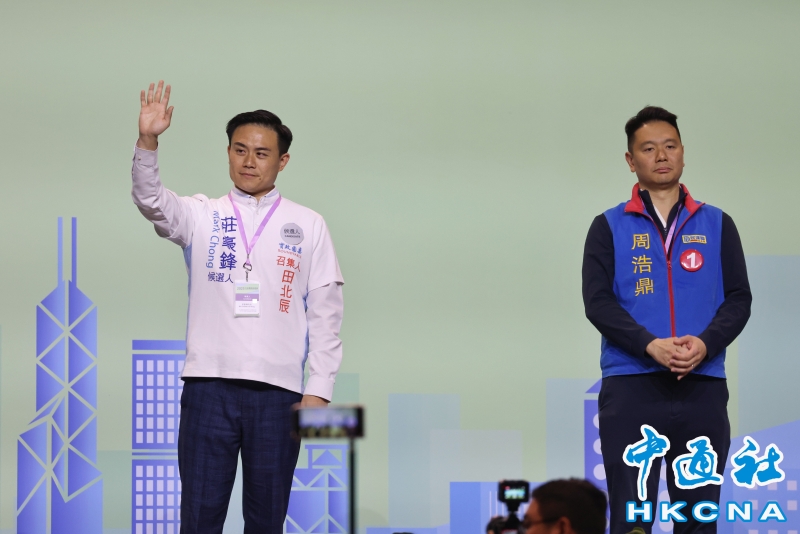 •   12月8日,2025年香港立法會換屆選舉地方選區新界西北公佈結果,周浩鼎、莊豪鋒成功當選。(香港中通社記者  謝光磊 攝) 香港中通社圖片