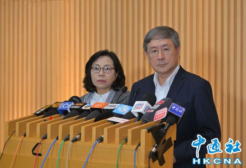 •   12月10日,香港政務司副司長卓永興(右)和民政及青年事務局局長麥美娟(左)就“大埔宏福苑援助基金”會見傳媒。 香港中通社圖片