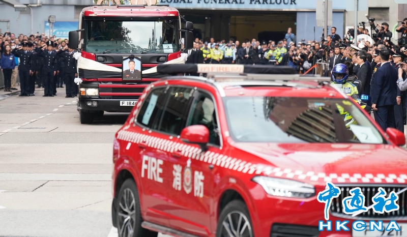 大埔火災殉職消防員出殯 靈柩蓋上特區區旗分享到: