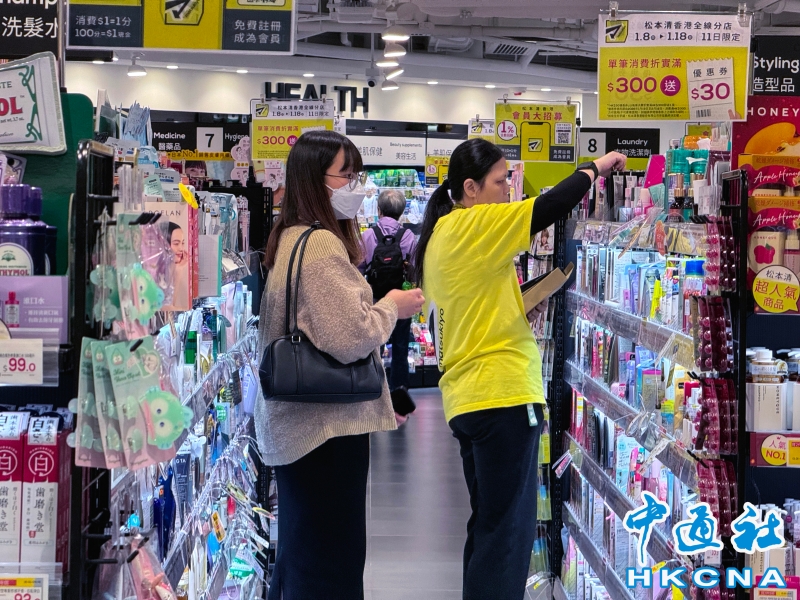 •   2月3日,香港特區政府統計處公佈,去年零售業總銷貨價值的臨時估計按年升1%;去年零售業網上銷售價值按年升12.8%。業界認為,去年整體數據與2024年相若,與零售業仍處於復甦調整期有關;但網上零售數據增幅明顯,反映港人消費的新趨勢。(香港中通社記者 徐文峰 攝) 香港中通社圖片