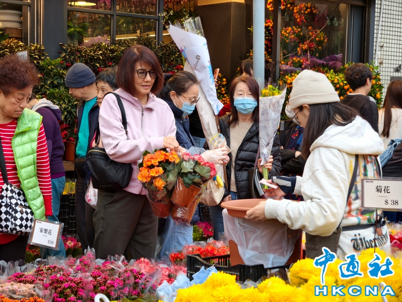 香港市民在旺角花墟選購年花迎馬年新春分享到: