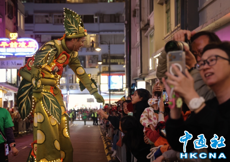 •   2月7日,香港渣打藝趣嘉年華“夜光巡遊”於銅鑼灣舉行。活動以《木偶奇遇記》為主題,共展出21件本地藝術家創作的作品,包括5座高達4米的巨型燈籠偶及16套發光嘉年華服飾。巡遊隊伍在燈光與現場音樂中穿行街區,吸引眾多市民沿途觀看。圖為高蹺表演者也在巡遊隊列中。(香港中通社記者 鄧梓杰 攝) 香港中通社圖片