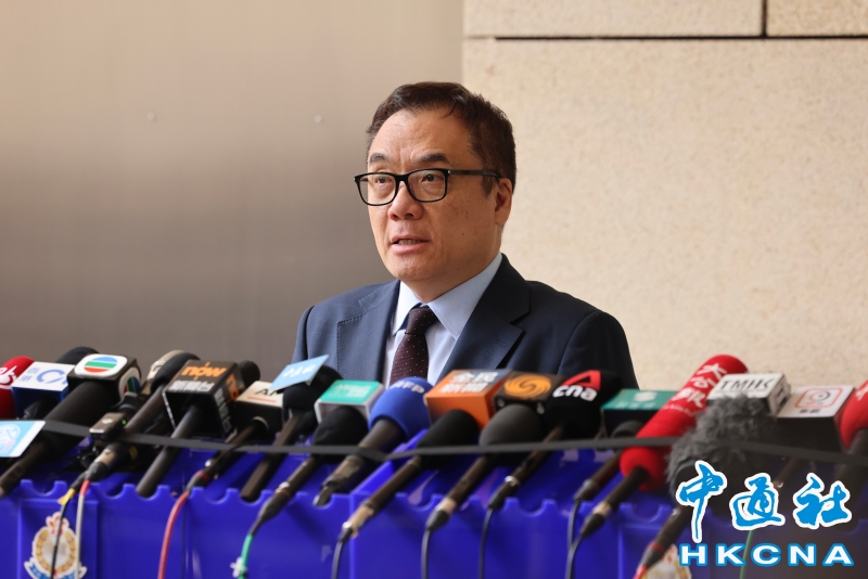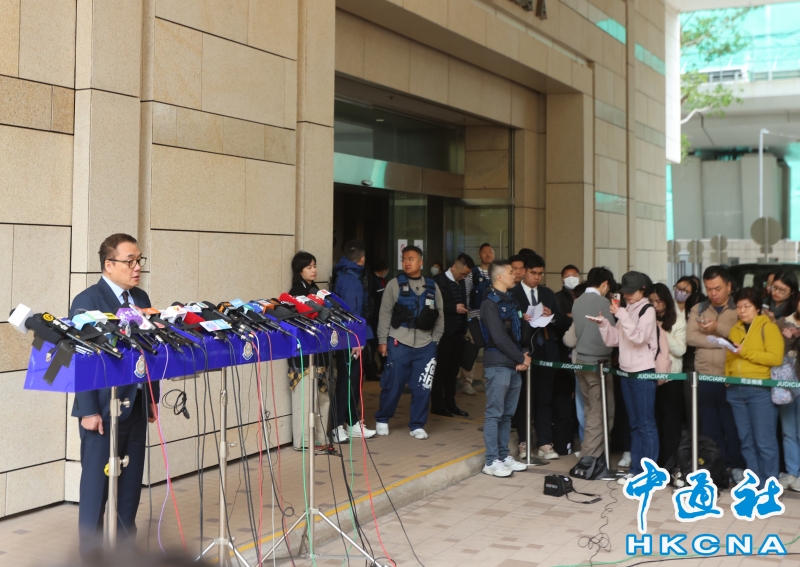 •   2月9日,香港警務處國安處總警司李桂華在西九龍法院大樓地下中庭見記者,回應黎智英案判刑。(香港中通社記者 鄧梓傑 攝) 香港中通社圖片