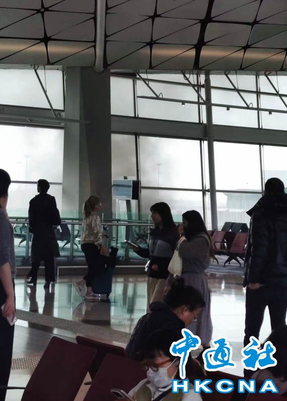 •   2月10日下午3時許,香港國際機場有機房起火冒煙,消防接報後迅速趕至現場,並出動兩隊煙帽隊及開動兩條喉撲救。圖為乘客從候機室外望,濃煙滾滾。香港中通社圖片香港中通社圖片