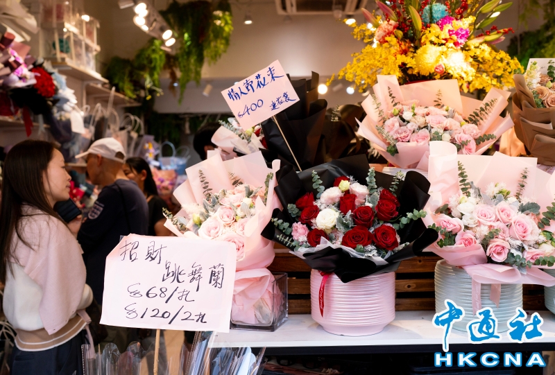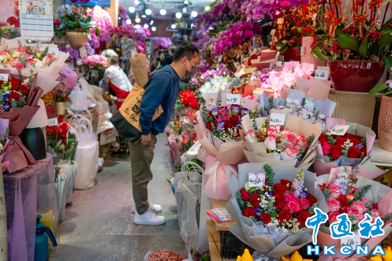 •   2月14日情人節,旺角花墟鮮花銷售暢旺,花店擺滿了應節的鮮花,吸引了大批市民前來選購。(香港中通社記者 陳奕啟 攝) 香港中通社圖片